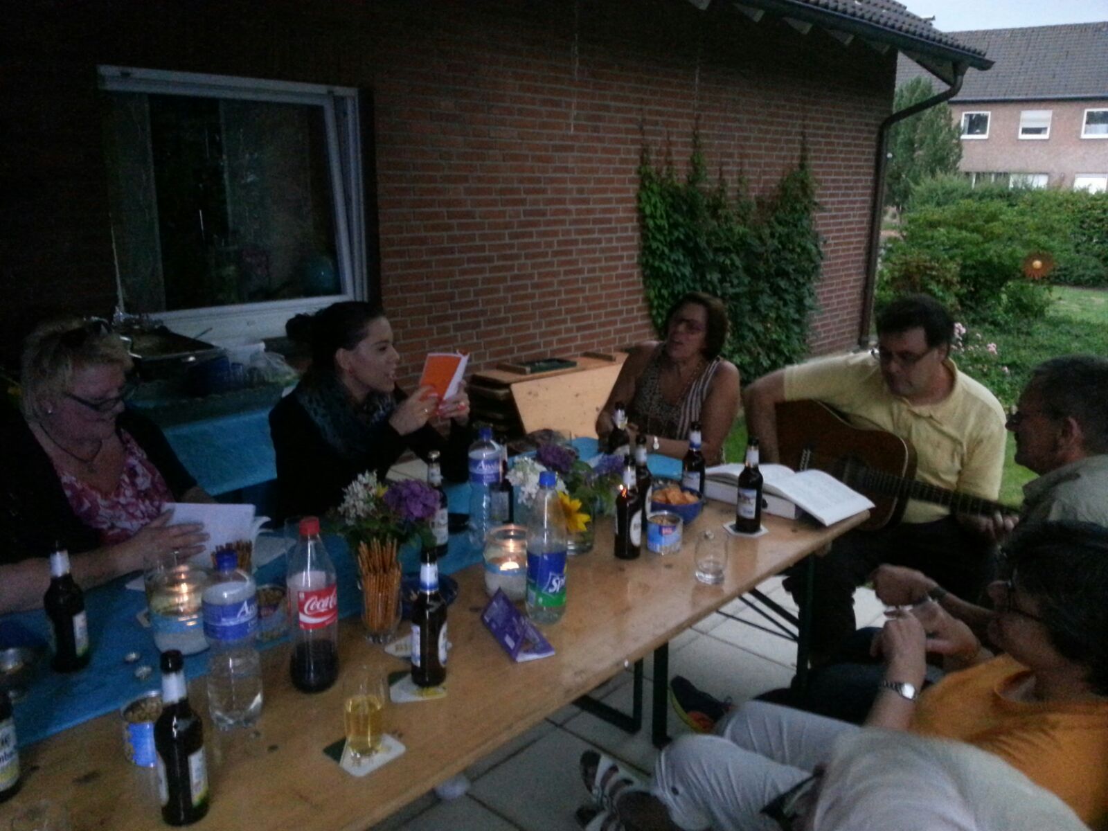 Für die Unterhaltung war in Form vorbereiteter Gesangsmappen zur Gitarrenbegleitung von Ingrid und Harald gesorgt. Darüber hinaus haben wir auf demSommerfest musikalisch fleißig improvisiert.