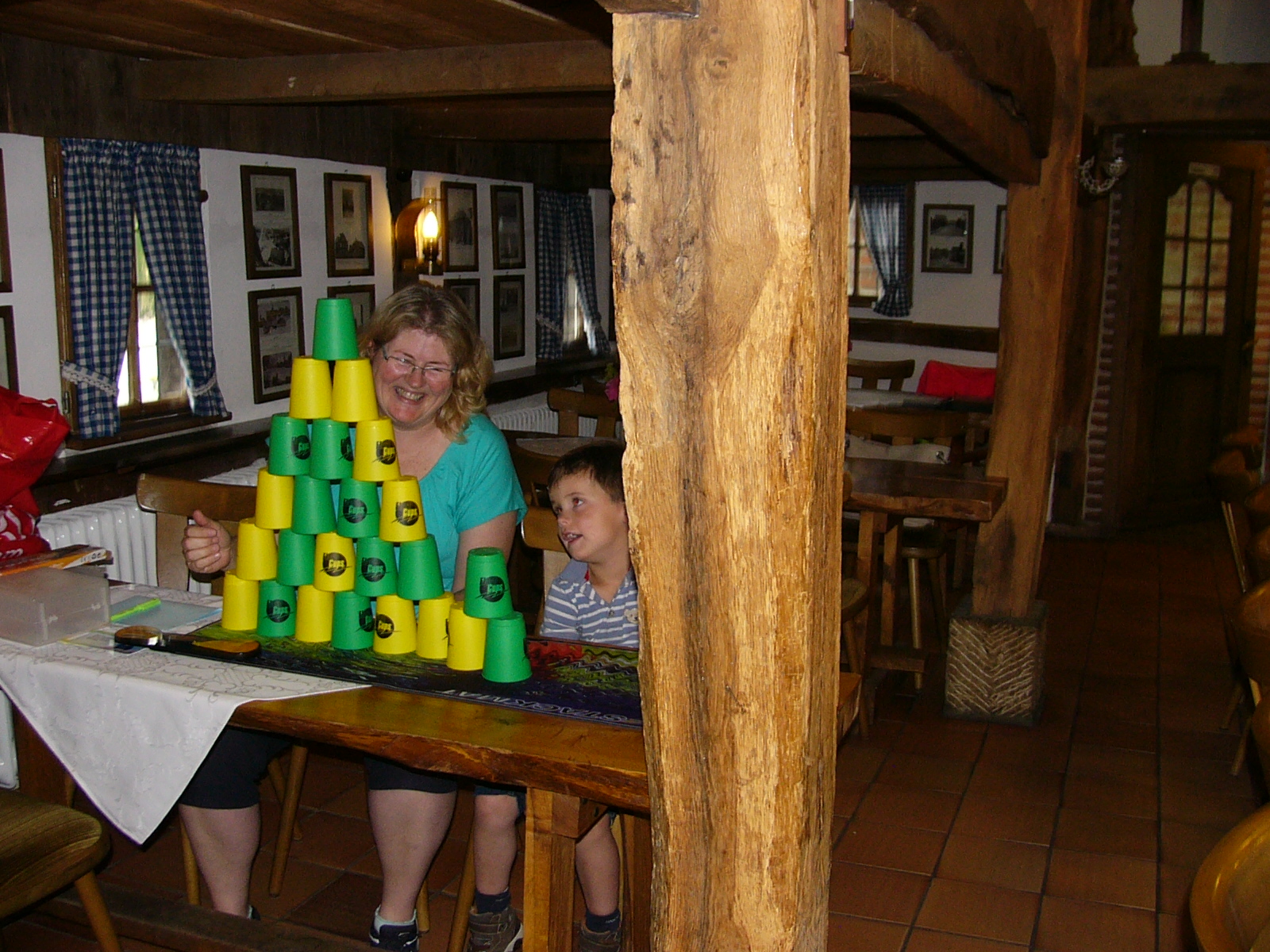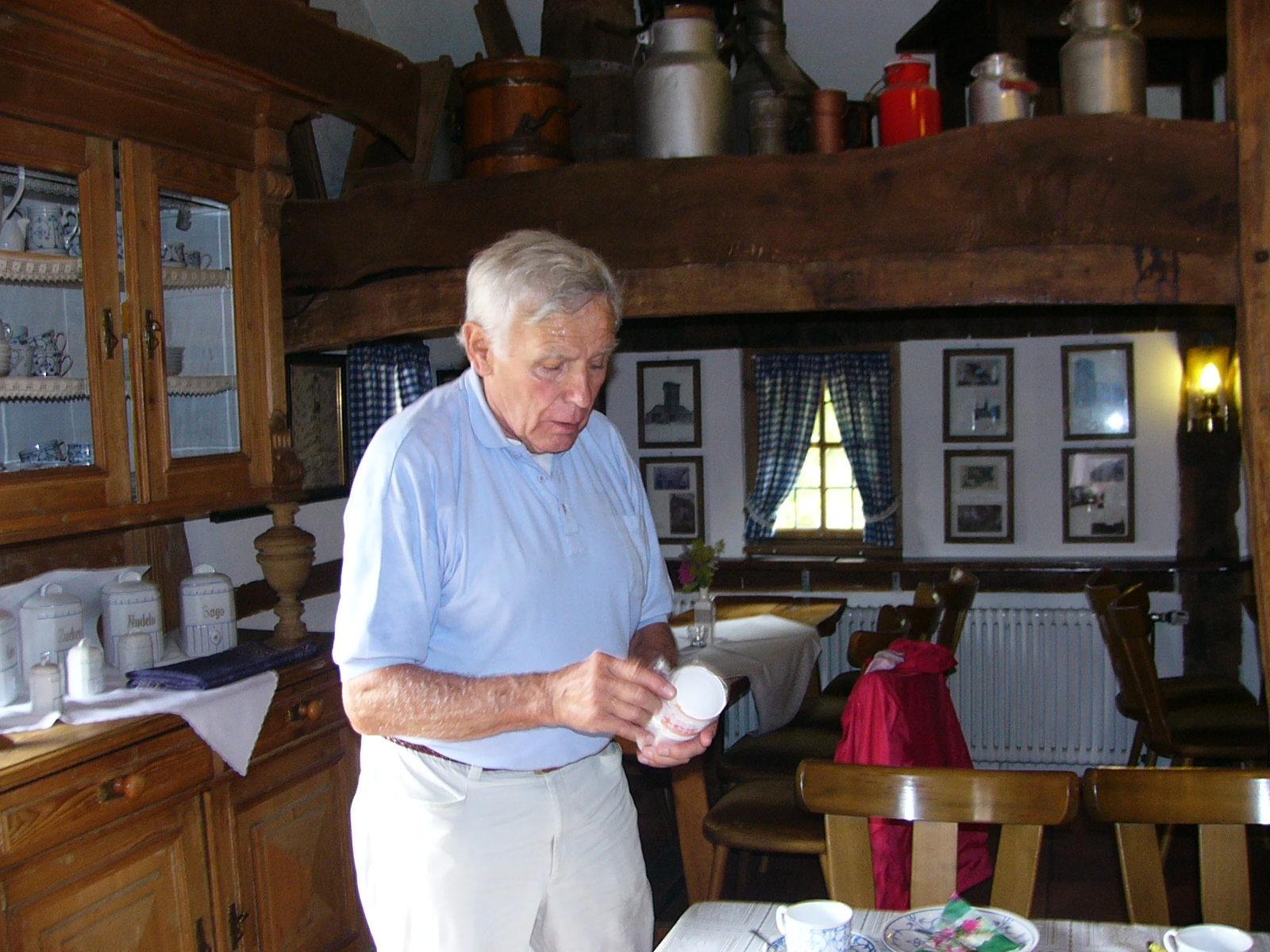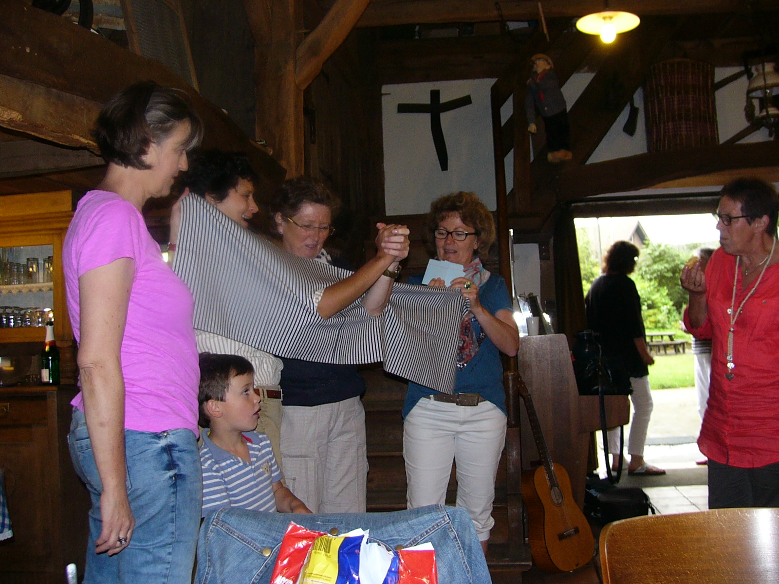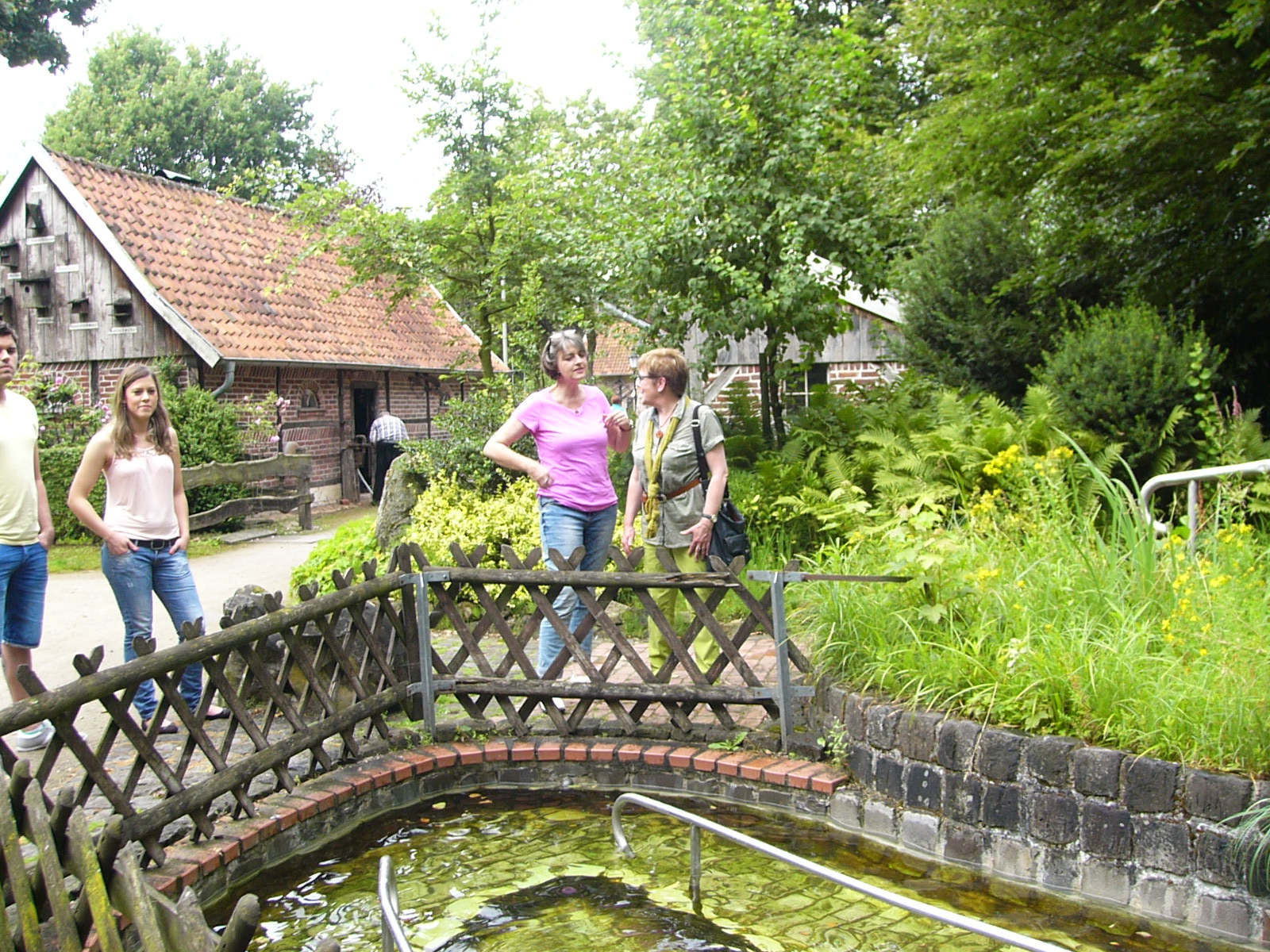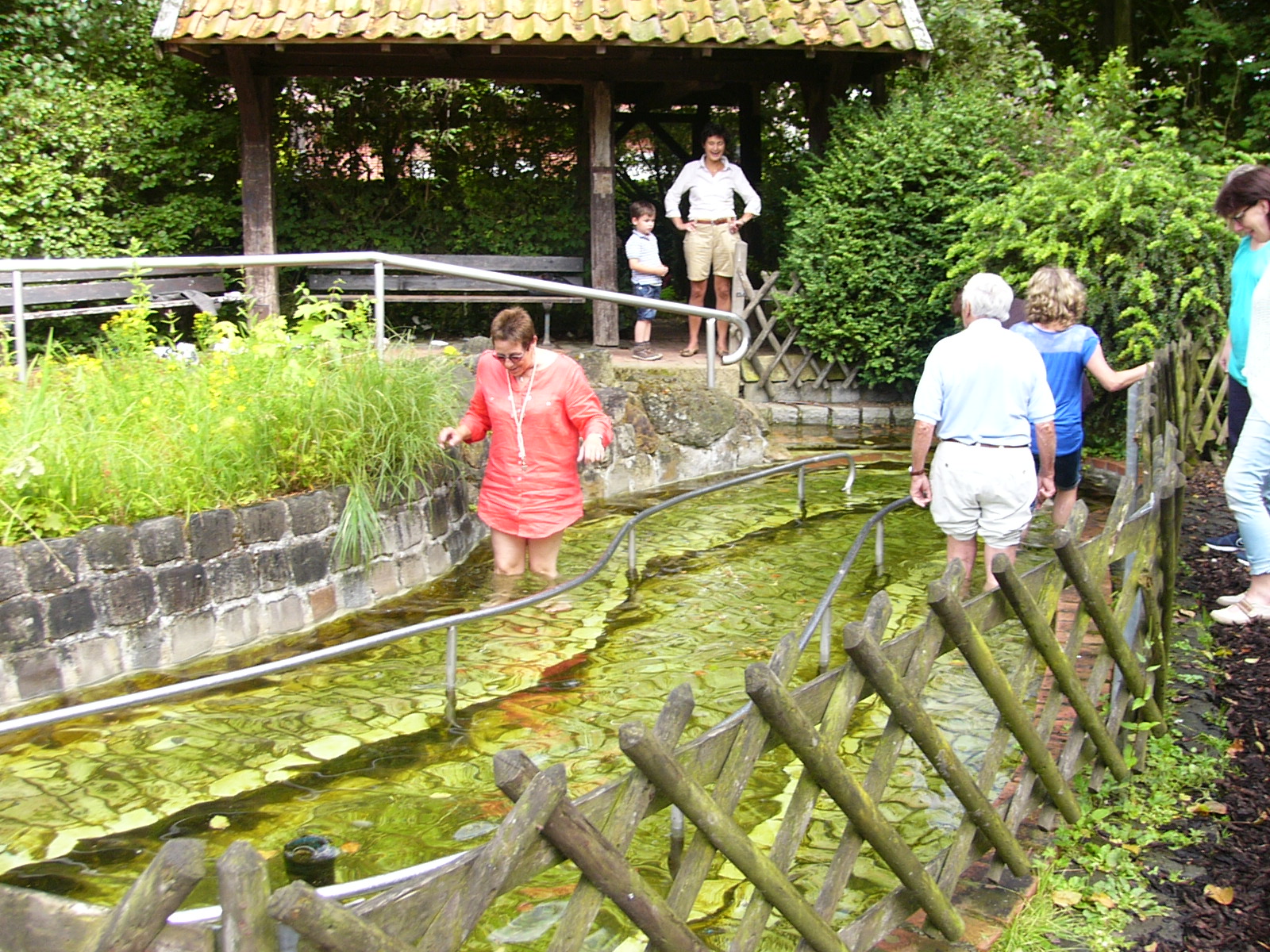 Nach dem Kaffee trinken, erkundeten wir die gesammte Anlage – „Heimathaus Weseke“, als da waren: der Apotherkergarten, der Kräutergarten, der Steingarten mit Sanden und Steinen aus aller Welt, die ausgestellten und liebevoll restaurierten, antiken landwirtschaftlichen Geräte. Einige liessen es sich nicht nehmen, auf „Kneippschen“ Wegen zu wandeln und das Wassertretbecken zu durchwaten – natürlich im Storchengang. Nach der Erkundung des Geländes, fanden sich alle Teilnehmer wieder im Heimathaus ein, um zu klönen oder ihr Geschick, bei vorbereiteten Spielen unter Beweis zu stellen. Wie es sich für einen Chor gehört, kam natürlich das gemeinsame Singen auch nicht zu kurz, wobei wir von Ingrid Garbert, auf der Gitarre begleitet wurden. Während des Festes, konnte ein jeder ein paar nette Worte in ein spezieell vorbereitetes Album eintragen, welches unserem scheidenden Sangesbruder, Friedhelm, bei der 1. Probe nach den Sommerferien überreicht wurde. Zum Abschluss sangen wir gemeinsam a`capella: Hallelujah, Jesus on the mainline und Can`t help falling in love.