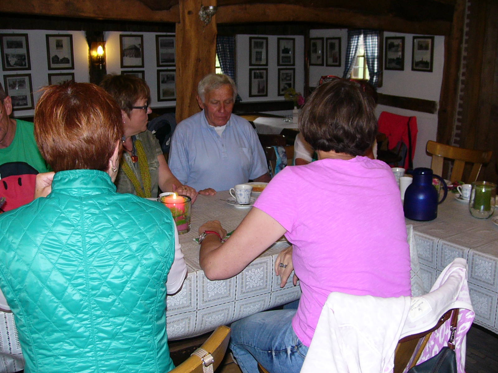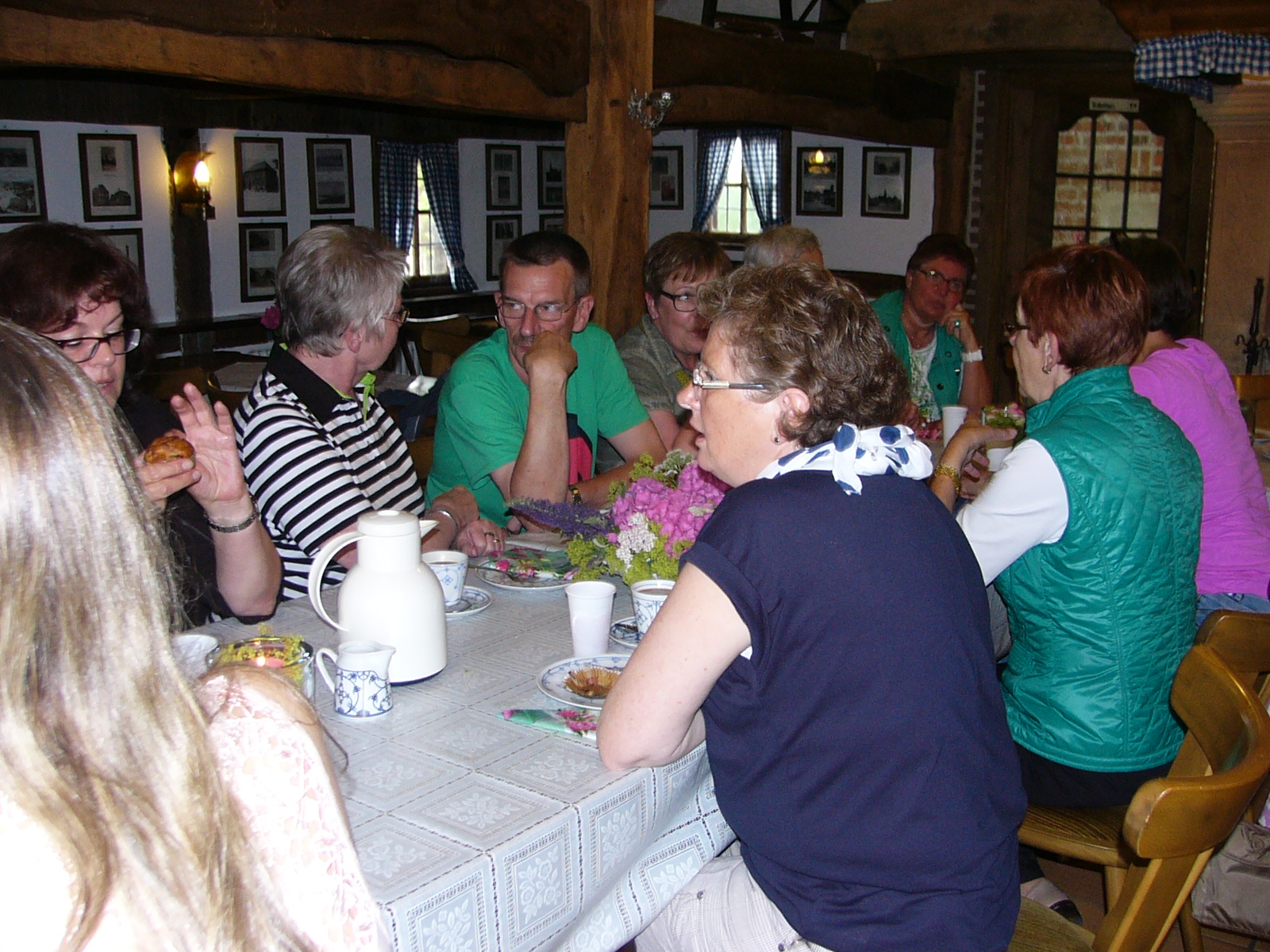 Als die Gäste eintrafen, war die Kaffeetafel schon gerichtet und man konnte sich in den Räumlichkeiten des Heimathauses niederlassen, um die aufgetragenen Köstlichkeiten zu genießen. „Erdbeeren“ – in allen Variationen und vieles Mehr.